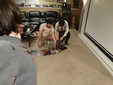 Evan is also a Bioshock fan. As in "Noah" he is seen with a Bioshock T-shirt, He also was recorded dragging his knife near a Bioshock Xbox 360 case.