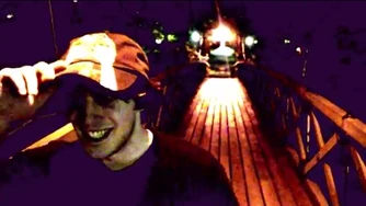 [Cut to Noah walking beside a playground, filming through the bars around it. As Noah pans past them, HABIT briefly appears between two bars; he unfolds his arms and begins to open his mouth, then disappears. Noah jumps back, startled, then pans around to see HABIT behind him. He runs. Video cuts to Noah walking down a street.]